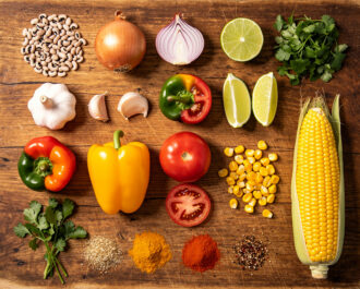 Dice 1 medium yellow onion, 1 large tomato, and 1 red bell pepper. Mince 3 garlic cloves and 1 serrano pepper (remove seeds for less heat). Rinse 1 cup of dried black-eyed peas and pick out any debris. Measure 1 cup of corn kernels, 4 cups of vegetable broth, 2 tbsp olive oil, 3 tbsp fresh lime juice, and ½ cup chopped cilantro. Have 1 bay leaf, 1 tsp ground cumin, 1 tsp salt, and ½ tsp black pepper ready.