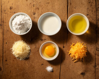 Gather 2 cups tapioca flour, 1 cup whole milk, 1/2 cup vegetable oil, 1 large egg, 1 cup grated Parmesan cheese, 1 cup grated sharp cheddar cheese, and 1 tsp salt. Ensure your cheeses are freshly grated from a block for the best melt and texture.