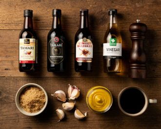 In a large bowl or a 4-cup glass measuring cup, whisk together the tamari, Worcestershire sauce, apple cider vinegar, and vegetable oil until the oil is fully incorporated. Add the brown sugar and whisk vigorously until it is mostly dissolved into the liquid base.