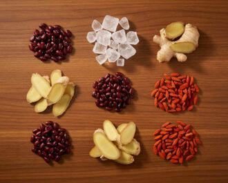 Rinse the dried red beans under cold water until the water runs clear. Peel and slice the ginger. Measure out the sugar and goji berries.