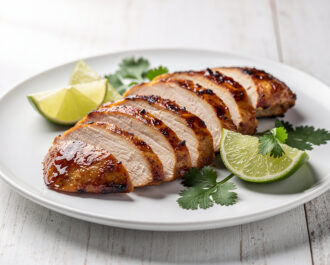 Slice the rested chicken breasts against the grain into strips or serve whole. Garnish with freshly chopped cilantro and an extra wedge of lime on the side for squeezing. Serve immediately with your chosen sides.