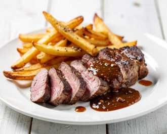 The marriage of juicy steak and crispy fries is a culinary romance born in 19th-century Parisian brasseries. While purists might insist on nothing more than a knob of butter, the addition of a pan sauce—built from the beautiful, browned bits left behind by the steak—is where the soul of the dish sings. This version takes inspiration from that classic French ‘jus,’ but with a bolder, more modern twist that’s incredibly fun to make. It feels like a chef’s secret that, thankfully, isn’t secret at all.